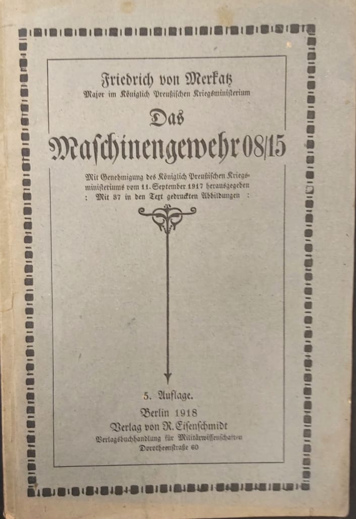 DAS MASCHINENGEWEHR 08/15 1918 – FRIEDRICH VON MEHRFASS – VERY RARE MANUAL FOR THE MACHINGUN MANUAL 08/15 BERLIN 1918 WWI GERMANY
